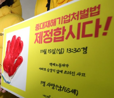 제정안은 노동자 사망사고가 발생했을 때 안전조치를 미흡하게 한 사업주나 경영 책임자에게 1년 이상 징역이나 10억원 이하 벌금에 처하도록 했다. 법인에는 50억원 이하의 벌금을 부과한다.